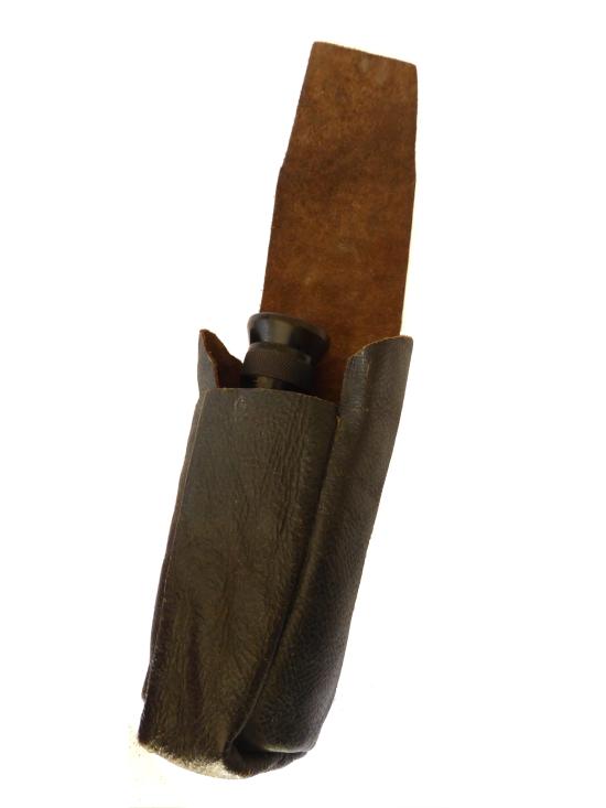 A WW1 military issue monocular adapted from a pair of binoculars. Presented in good useable condition with broad arrow mars and faint maker's details, plus soldier's number. Clear optics but would benefit from cleaning. No fungus or damage. Monocular includes field made leather soft-case.