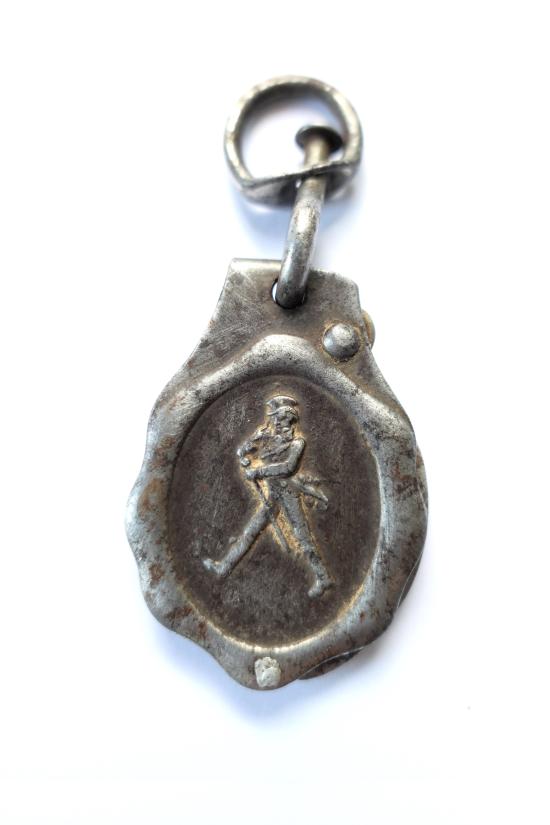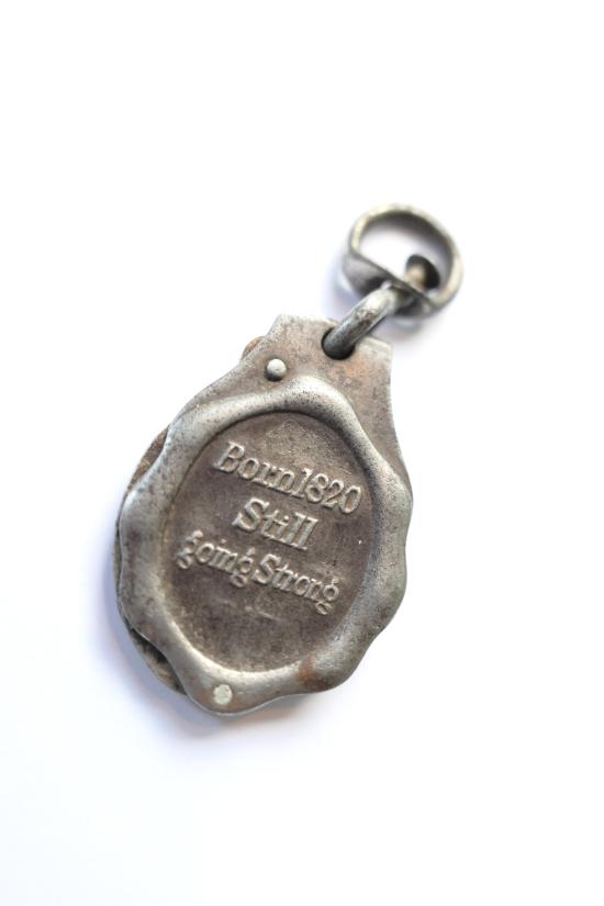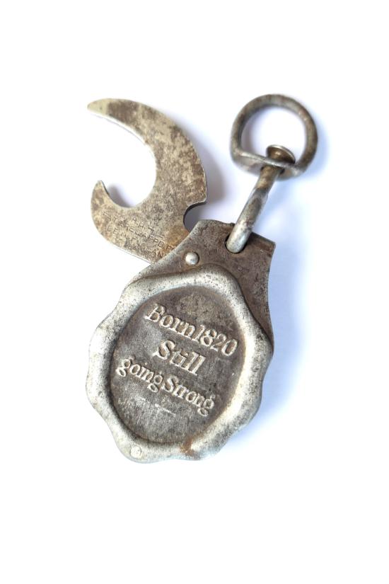 An interesting Johnnie Walker whisky advertising key fob with a concealed bottle-opening blade. All steel construction.