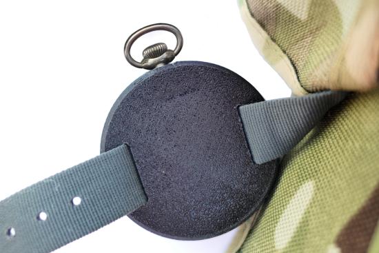 We now have a small quantity of military style Mark II GS pocket watch holders available. These are modern renditions of the watch holders used during WW2, but reimagined to now feature concealed lugs, allowing the wearer to strap their pocket watch to the wrist on either a leather or nylon NATO single-pass strap.
