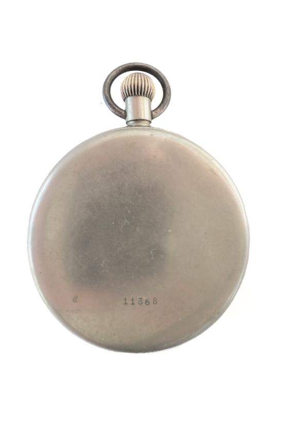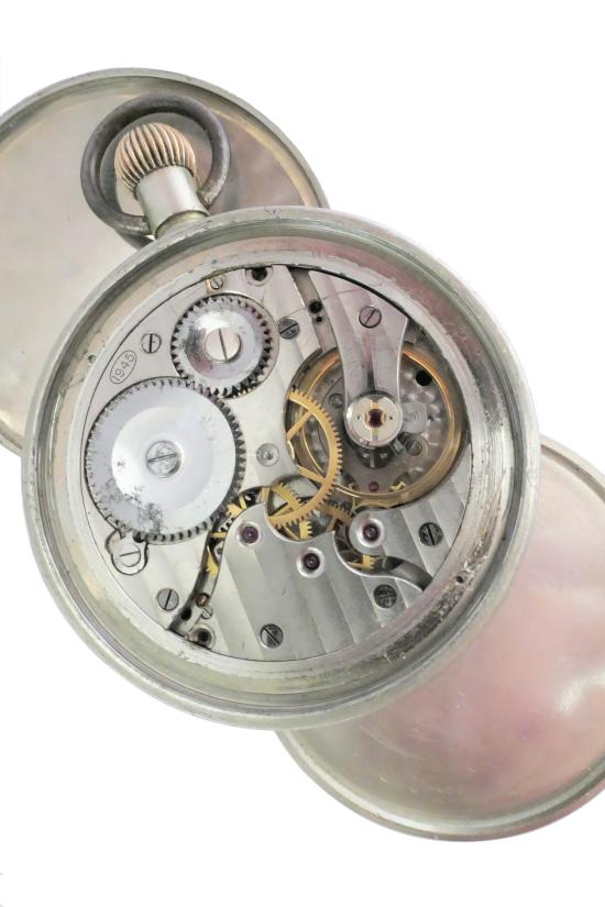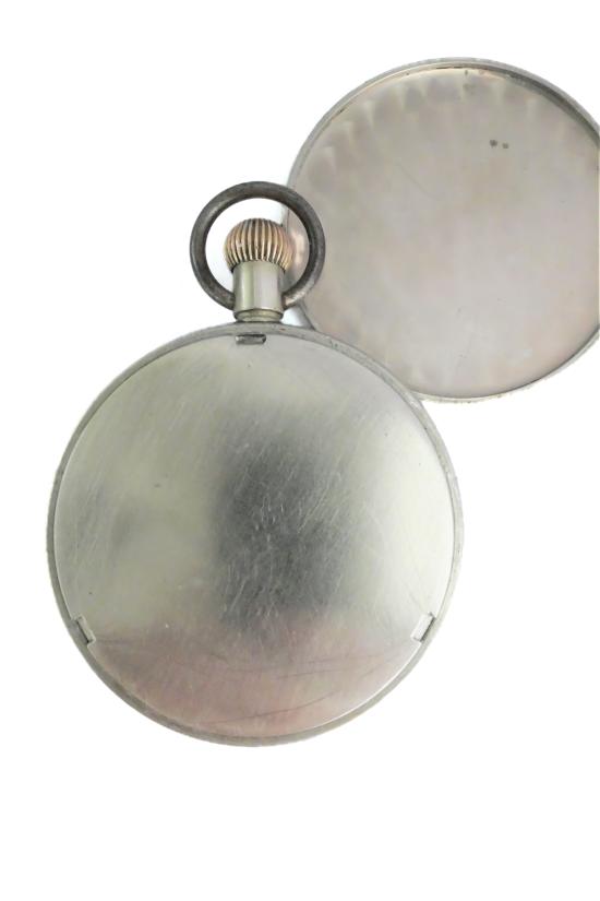 A pre WW2 German Army issue Silvana pocket watch, c.1936. These early military waterproof watches featured technological advancements such as the introduction of the Incabloc shock protection system but they were not marked with the D.H. property stamp - This kind of marking would become synonymous with those watches produced during WW2. Nevertheless, an issue number can be seen on the back of this one, and these early variants were just a little larger overall. This was due to an internal protective screw down capsule that surrounded the movement, a feature that was simplified on later examples.
